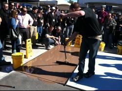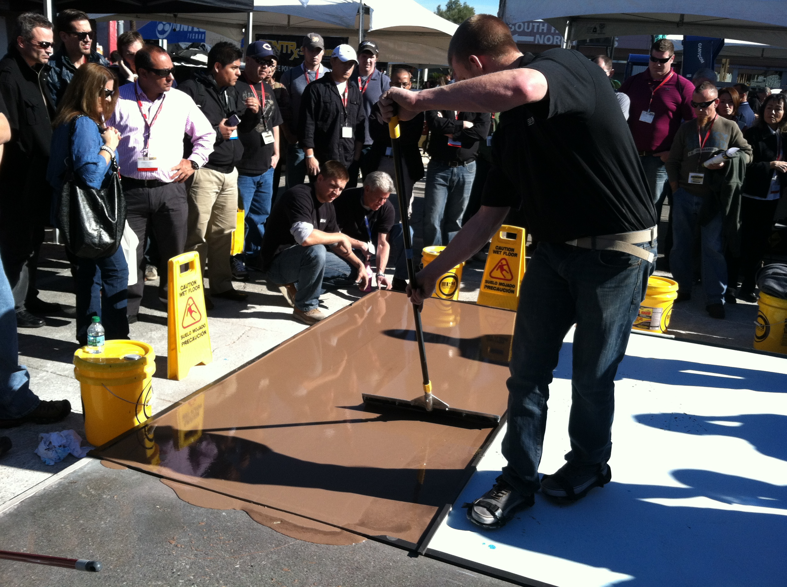 In each of these applications, the finish is both attractive and extremely durable. The cost is comparable to an epoxy application- but after several years, we see zero wear. The floor stays shiny and smooth, unlike other finishes. And, even though it is shiny, it is not slippery!